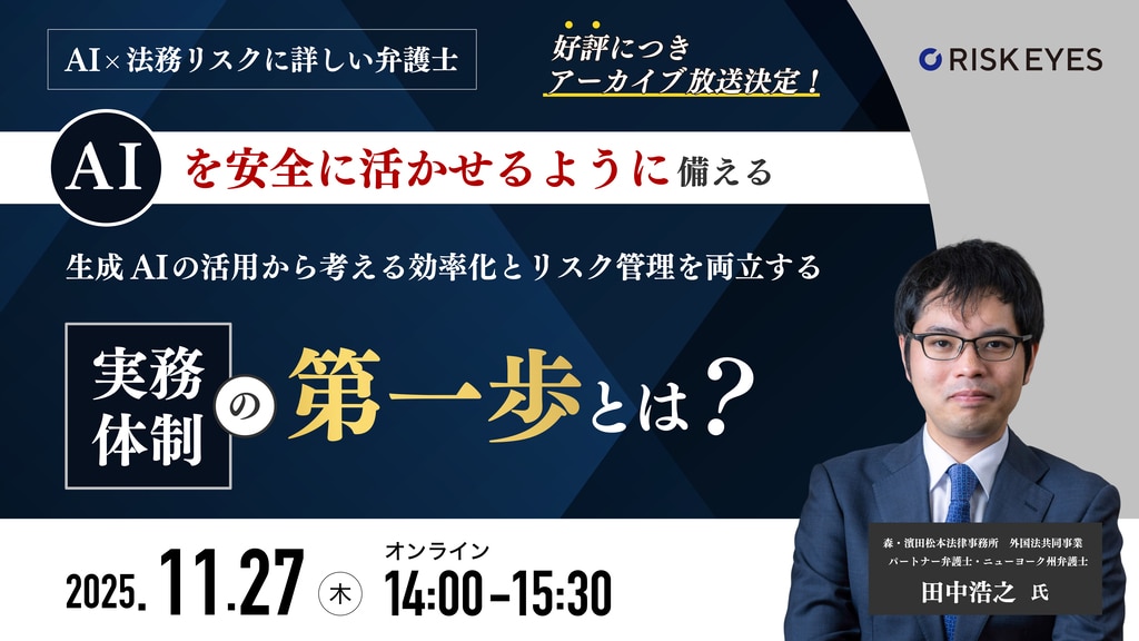 また、少人数の法務部門でも無理なく実践できる社内ルールやチェック体制の整備方法を取り上げ、現場で直面しやすい課題とその対応策を、最新の情報や具体例を交えながらお話しします。