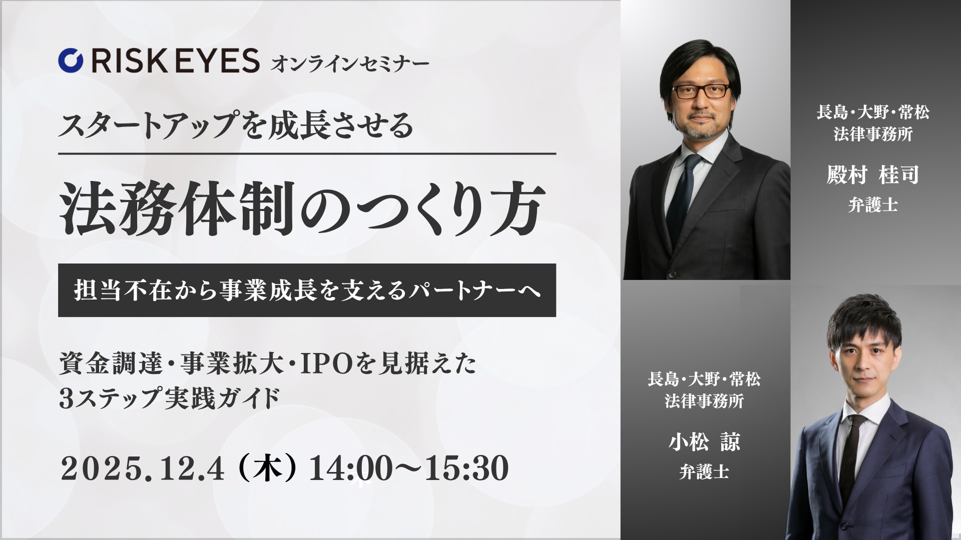 ぜひこの機会に、スタートアップ法務の最前線を体感し、自社の成長フェーズに合わせて法務をどう進化させるか、ヒントを手に入れてください。
